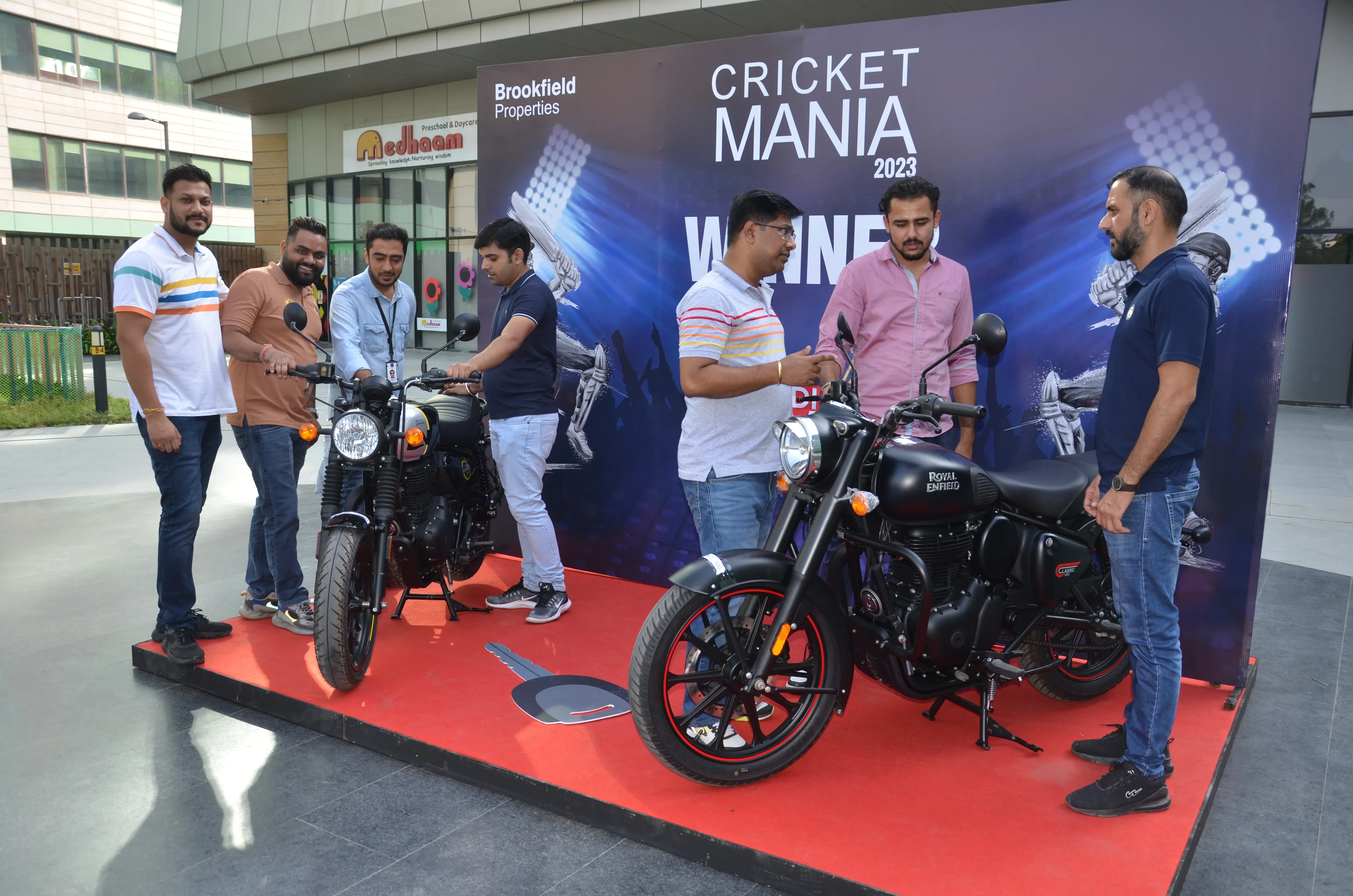From June to August, we decided to take things up a notch by introducing live screenings of Indian Premier League (IPL) matches at our campuses across India. We organized screenings for four matches at each of our campuses, attracting thousands of tenants who gathered to enjoy the matches on expansive LED screens. This initiative provided them with a valuable opportunity to relax and collectively support their favourite teams. The screening venues were filled with the fervour that cricket uniquely inspires in India. Additionally, we introduced the Cricket Mania 2023 contest, allowing participants to make predictions online and win exciting prizes. We awarded 4 Royal Enfield motorcycles and 55 smartphones as grand prizes to winners from across India.